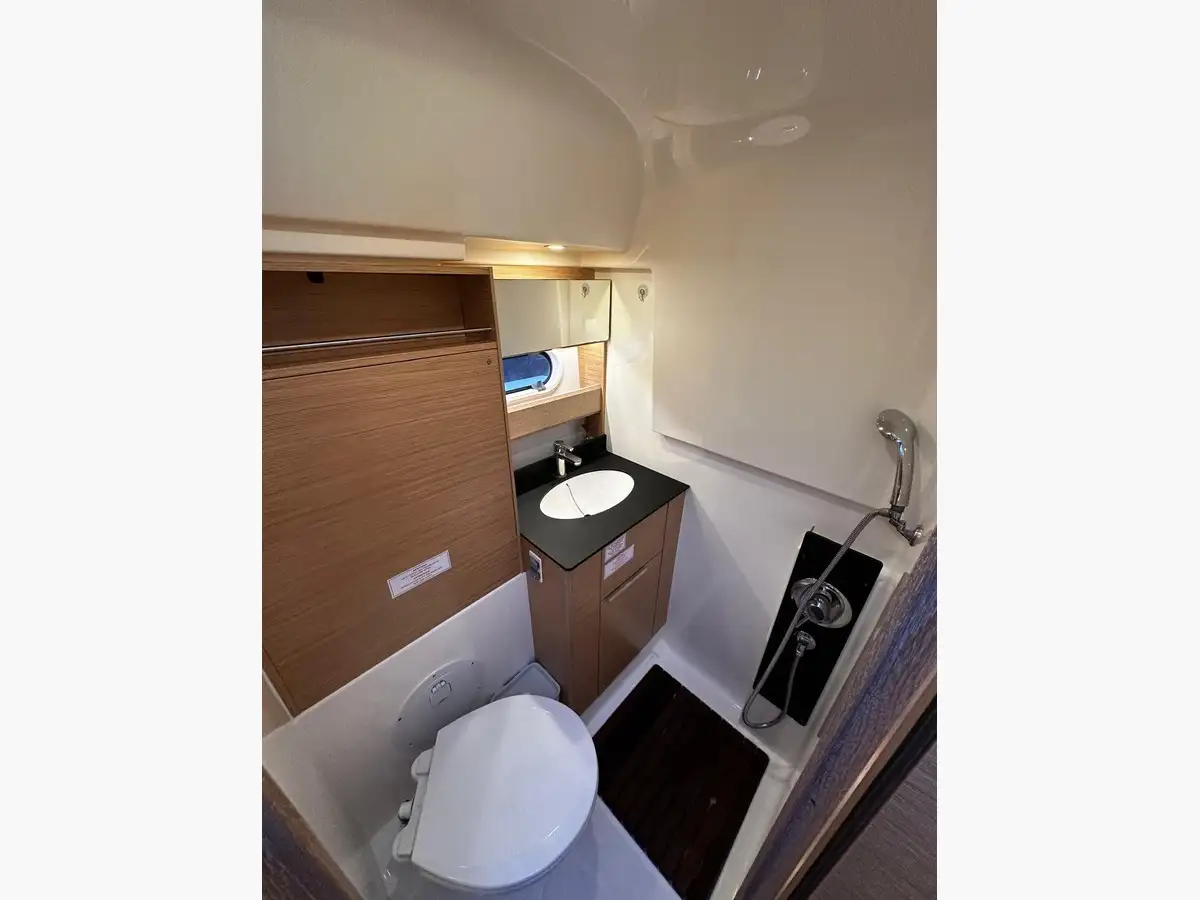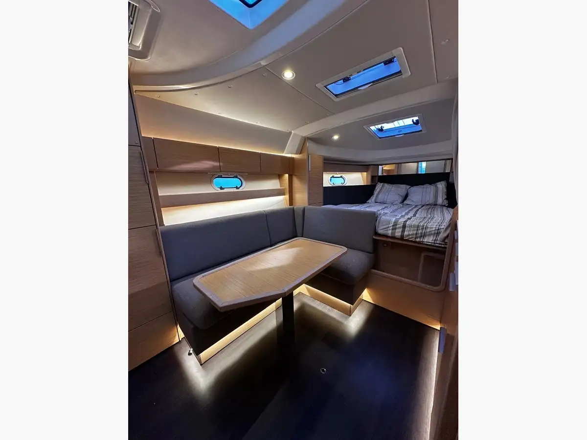 Avec ses 10 mètres de long, ce bateau offre un volume de vie exceptionnel pour sa catégorie. L’intérieur, lumineux et chaleureux, se distingue par ses boiseries claires, ses finitions soignées et ses nombreux rangements. L’éclairage élégant crée une ambiance cosy et raffinée, idéale pour profiter pleinement de chaque moment à bord.