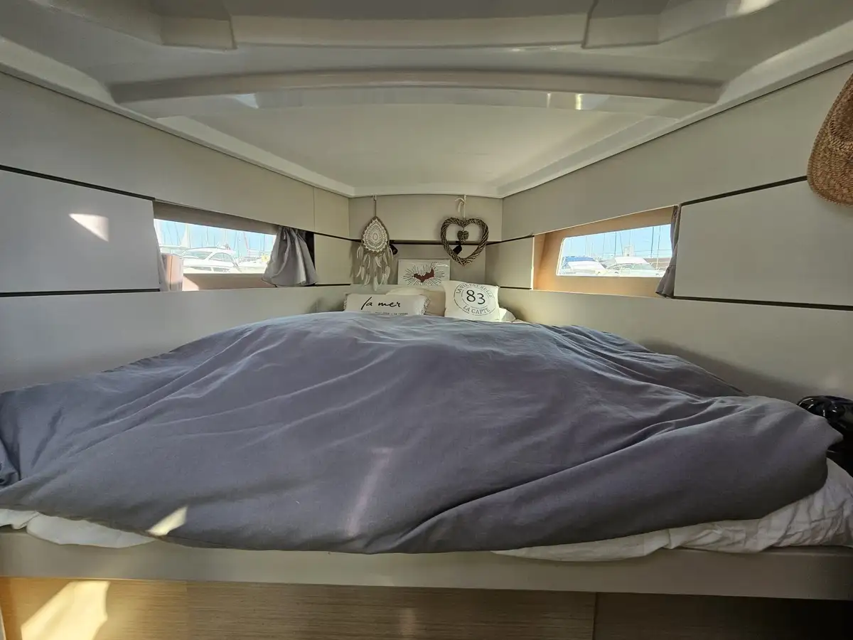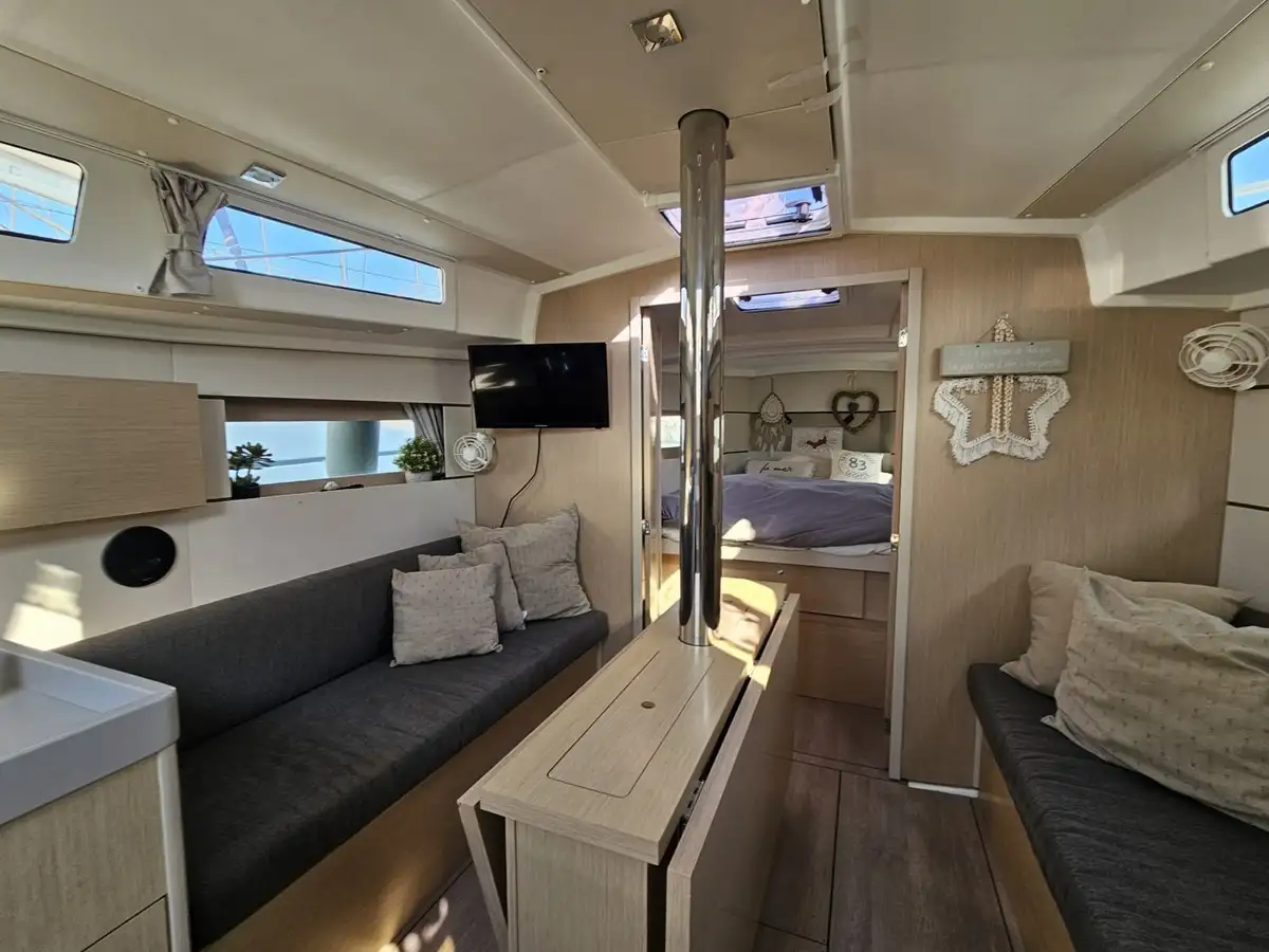 L'avis du broker : Cet Océanis 38.1 se distingue par son aménagement en 3 cabines, très recherché, et son esthétique moderne soulignée par le cockpit teck et ses toiles anthracite. C'est une opportunité "clés en main" : montez à bord, hissez les voiles, vous n'avez aucun frais à prévoir avant 2027.