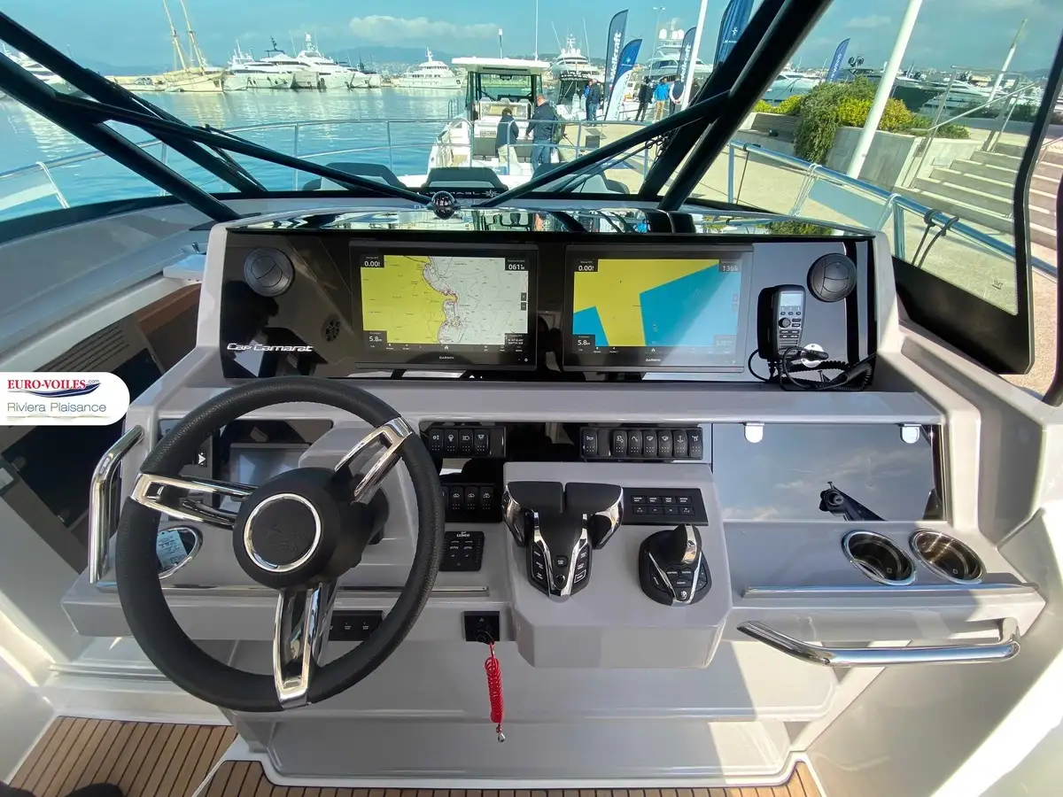 Nouveauté 2025, il est désormais équipé d’un pare-brise haut, alliant protection et élégance. Découvrez également son T-TOP sportif et son poste de pilotage high-tech, doté de deux écrans GARMIN pour une immersion totale dans la navigation.