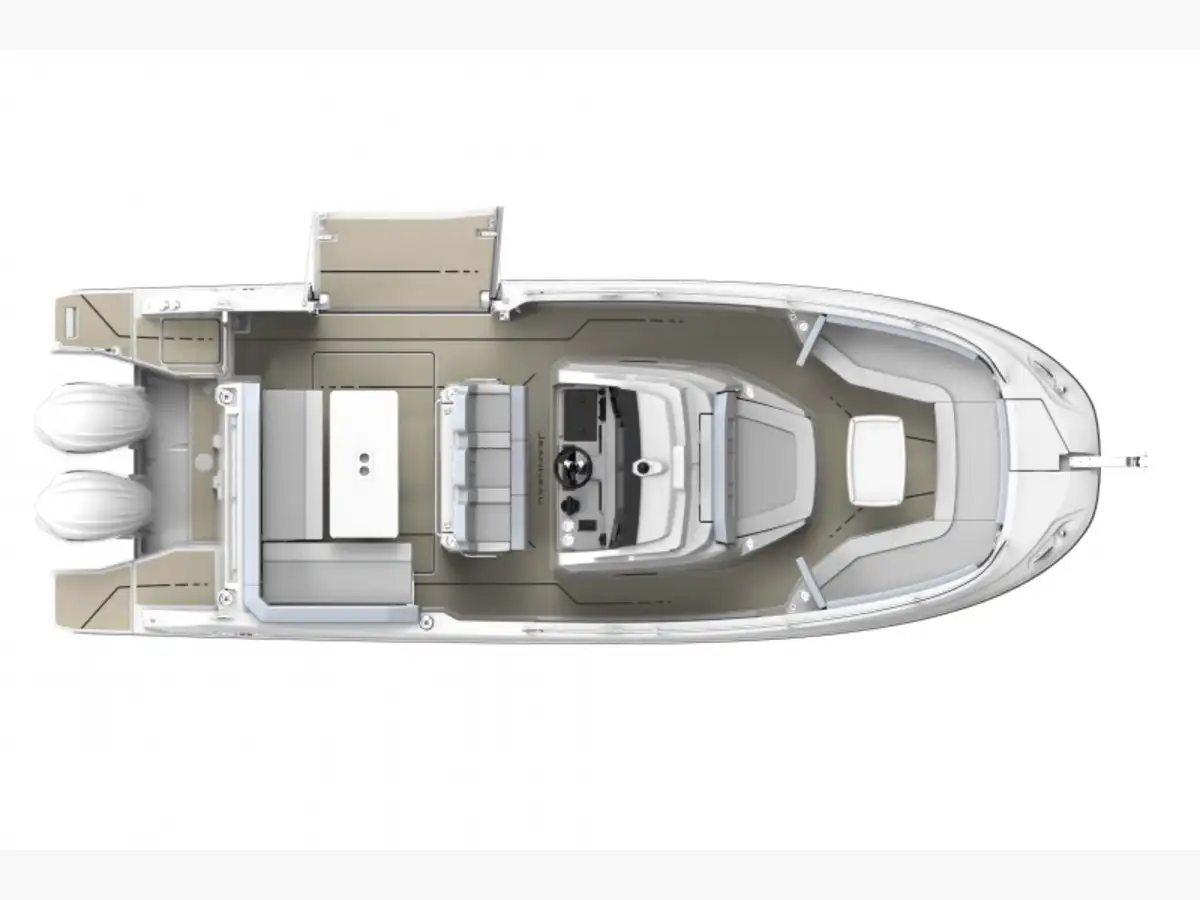Équipé de deux Yamaha 250 chevaux blancs avec direction et commandes électriques, il intègre un joystick facilitant les manœuvres au port comme au mouillage. À bord, tout a été pensé pour maximiser le plaisir d’utilisation : cuisine extérieure conviviale, T-Top protecteur, finition Première valorisante, électronique Garmin Upgrade performante, système audio Fusion immersif, packs ambiance et Pure Fishing dédiés aux loisirs en mer. Le propulseur d’étrave, les flaps, le mât de ski et le cockpit en Flexiteek renforcent encore le confort et la précision de navigation. Sa coque bleu gris sublime son style et lui donne une présence exceptionnelle sur l’eau. Cette opportunité est d’autant plus précieuse qu’un seul bateau est disponible dans cette définition. Il est possible d’ajouter un certain nombre d’options et de personnaliser cette unité avec notre chantier naval.