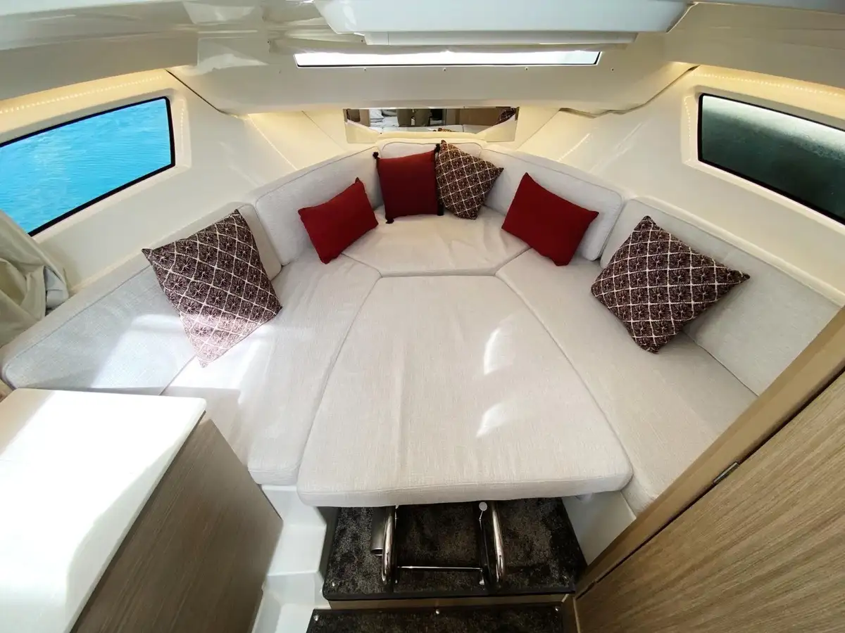 Bain de soleil transformant le cockpit arrière, accès facile et sécurisé à la mer, terrasse latérale. Profitez d'un véritable cockpit supplémentaire à l'avant pour vous détendre avec une chaise longue ou un bain de soleil, suivi d'une cuisine extérieure et de deux cabines doubles accueillantes.