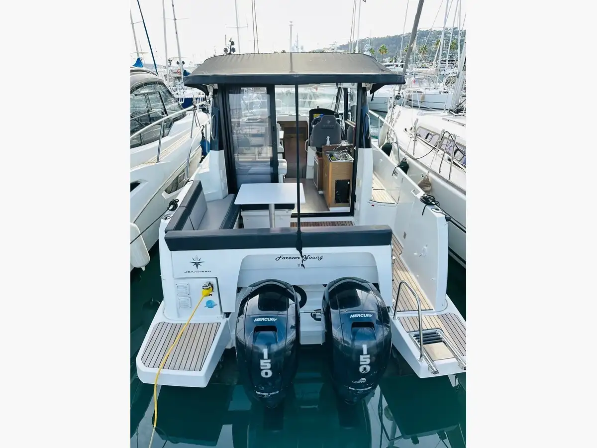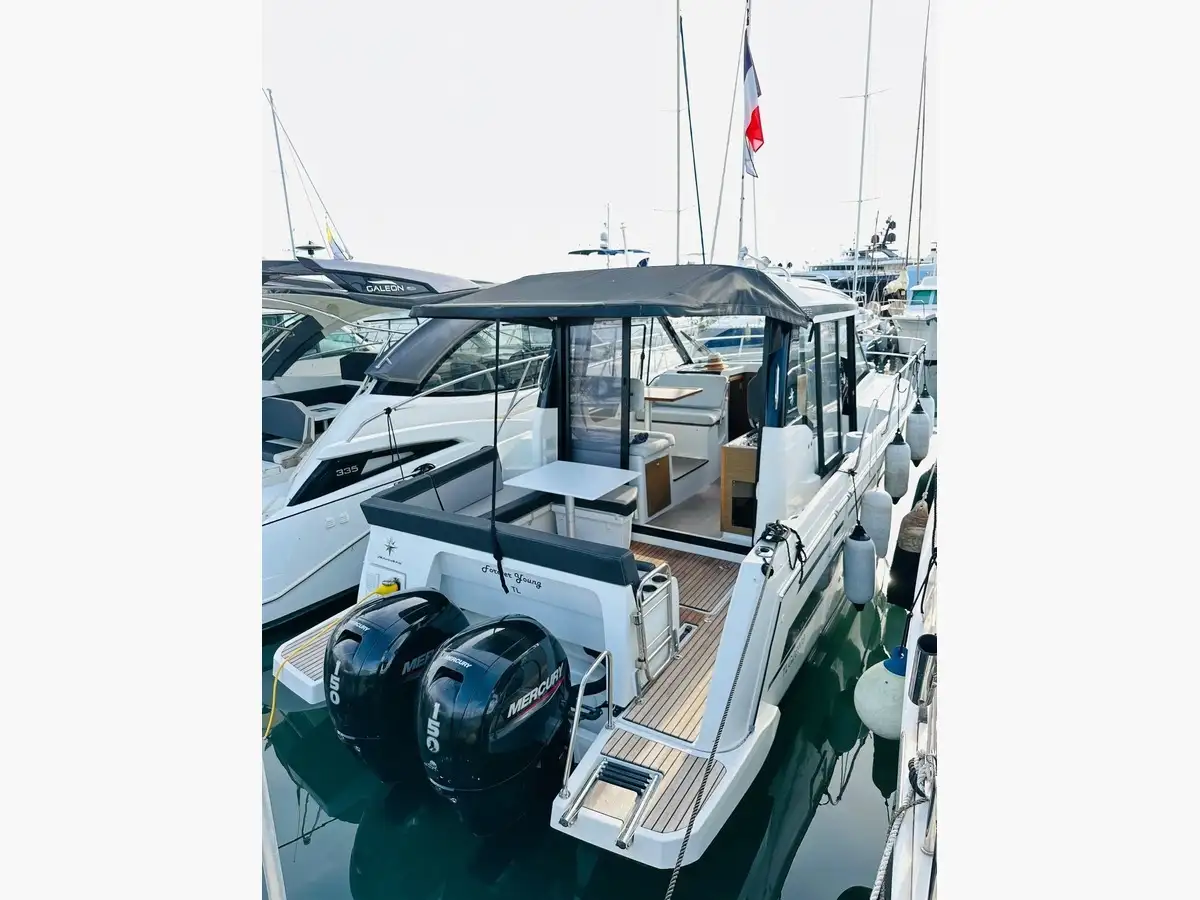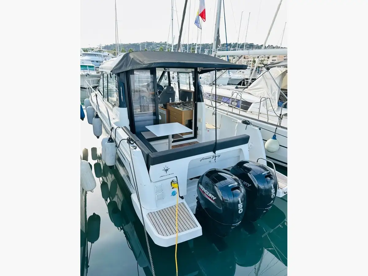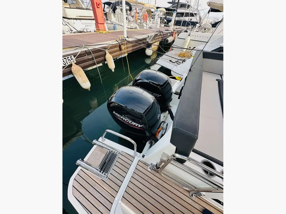 Équipé de deux moteurs Mercury EFI 150 totalisant 184 heures, encore sous garantie constructeur, entièrement révisé et caréné chaque année. Bateau disponible immédiatement.