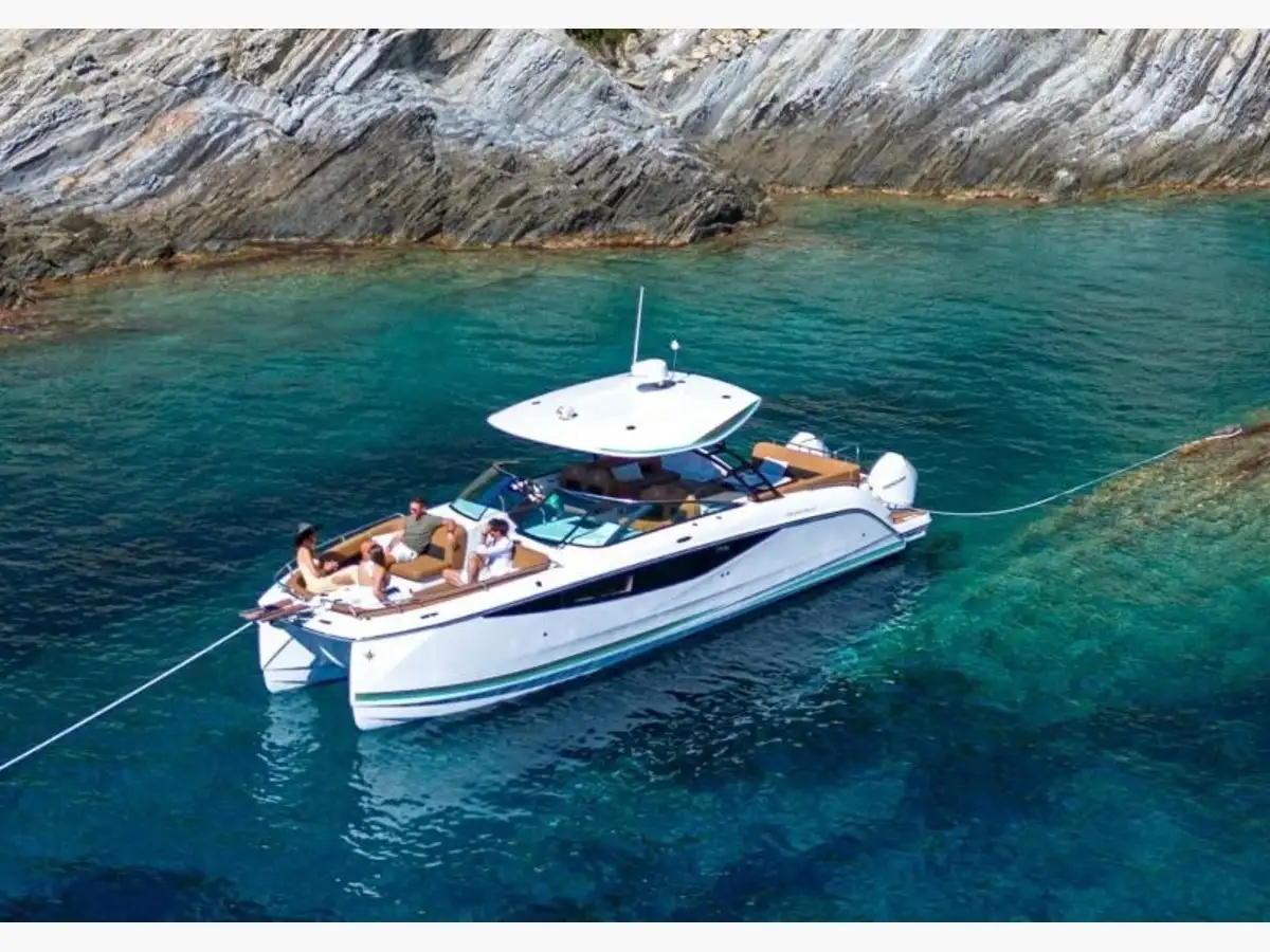 Ses espaces extérieurs généreux, avec cockpit arrière convivial, cuisine extérieure équipée et cockpit avant avec bains de soleil, invitent pleinement à la détente en mer. Le poste de pilotage ergonomique, doté d’équipements électroniques modernes, garantit une prise en main simple et précise.