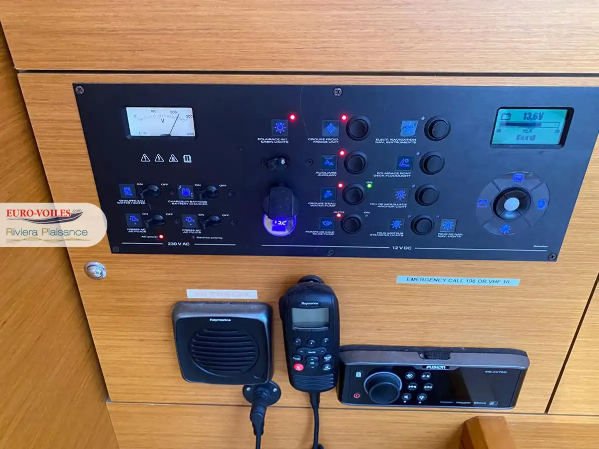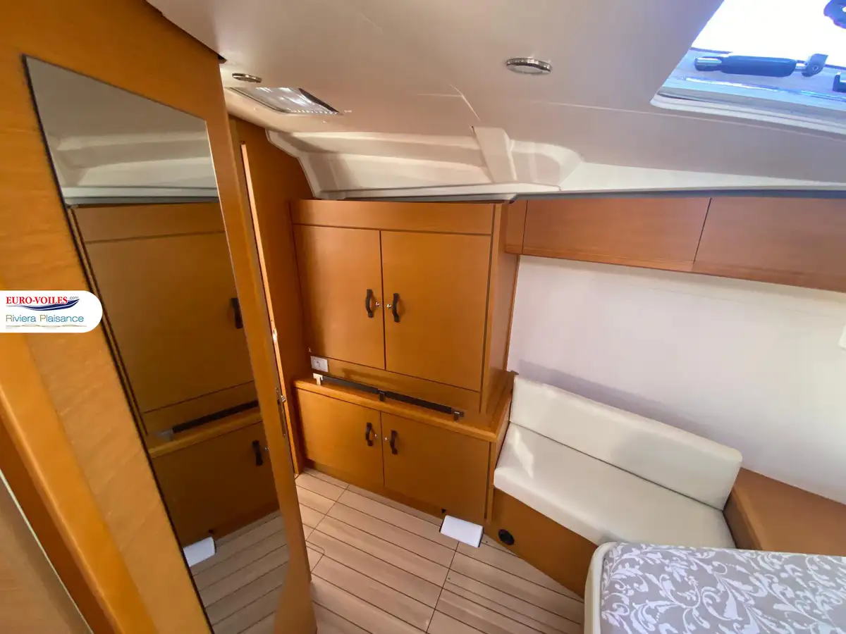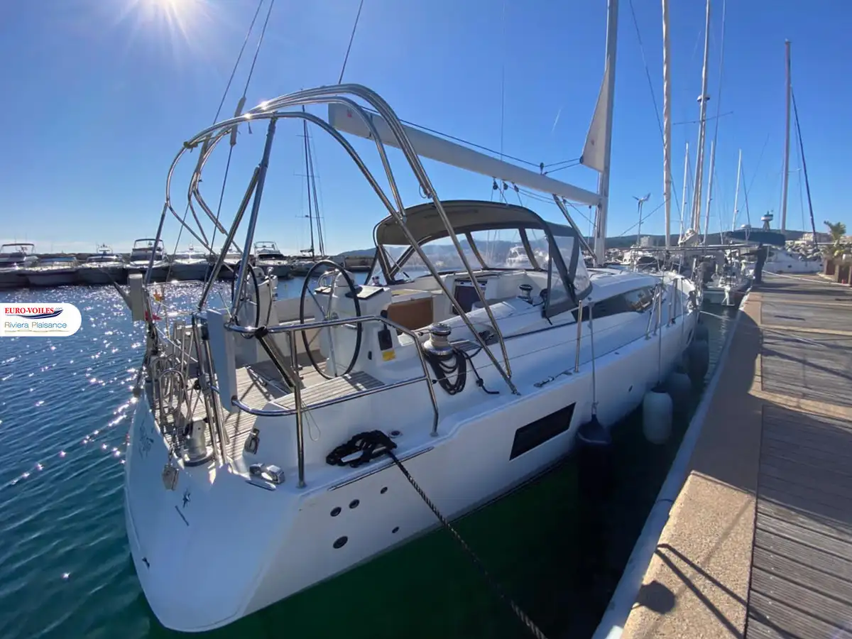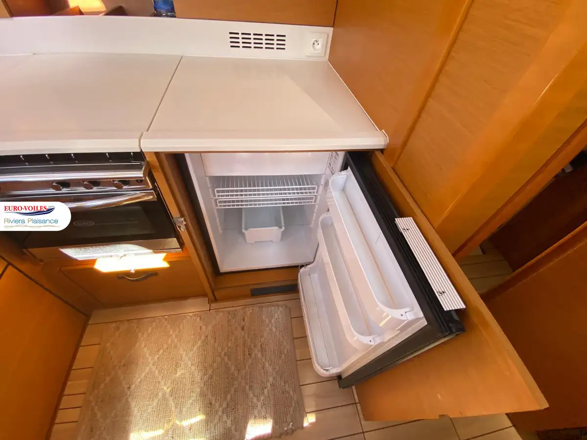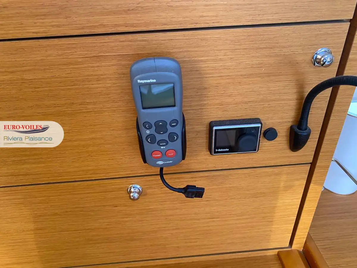 Le cockpit est XXL. Avec deux méridiennes de part et d’autre de la descente, très large table pour recevoir. Double poste de pilotage séparé de la zone cockpit pour se faire plaisir a la navigation. Bateau dynamique et très simple d’utilisation grâce entre autres à sa grand-voile sur enrouleur.