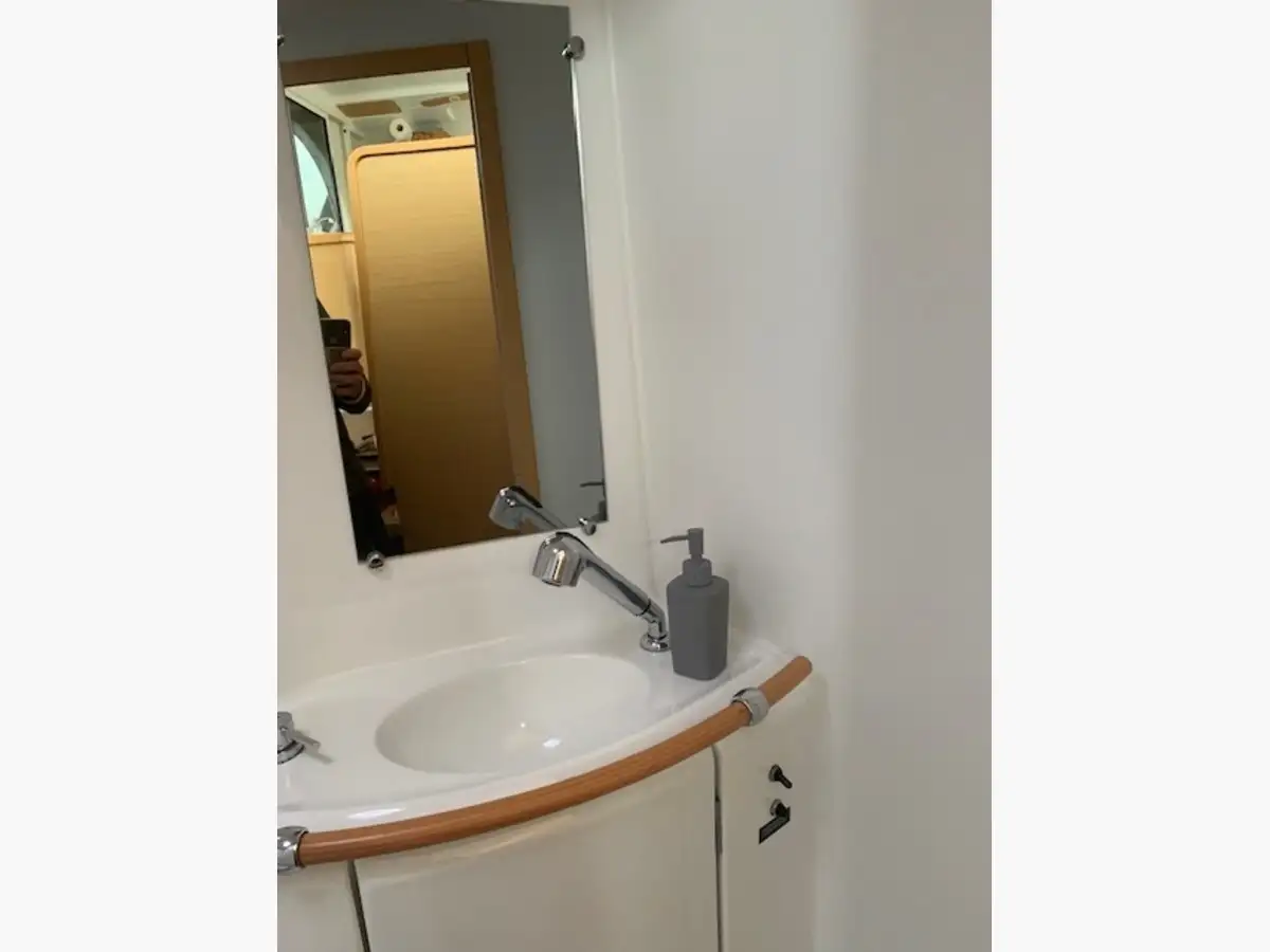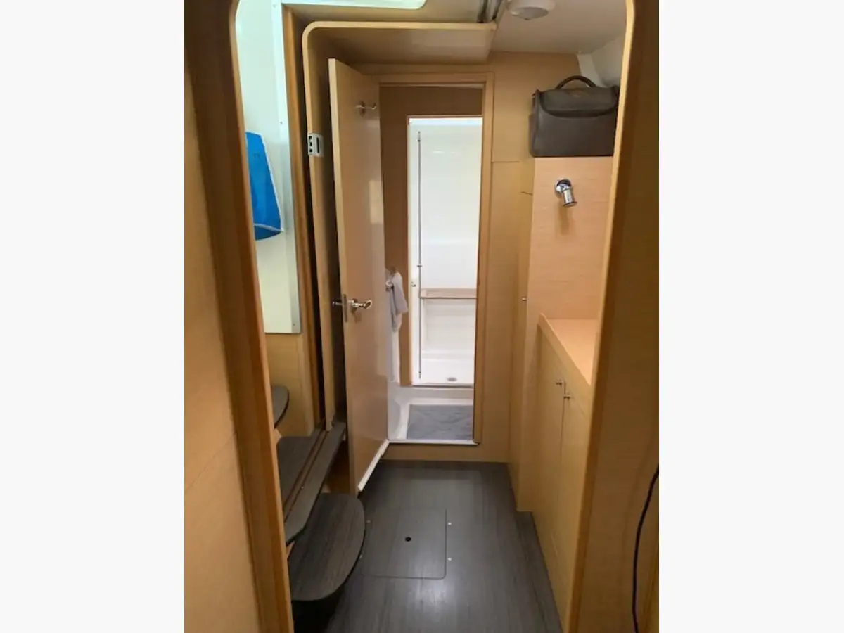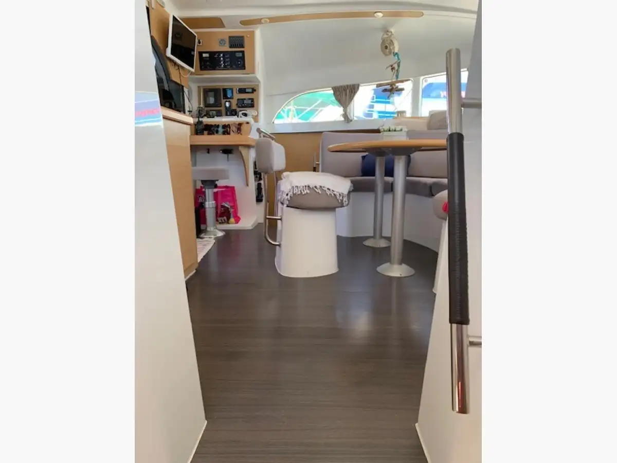 A l’intérieur un salon lumineux, très bien conçu, avec une belle hauteur sous barrot et un espace de vie spacieux. La cuisine parfaitement équipée permet de profiter pleinement de la vie à bord, que ce soit en navigation ou au mouillage. Cette configuration propriétaire offre une cabine vaste et confortable, ainsi que des espaces optimisés pour offrir une expérience de croisière chaleureuse et fonctionnelle.