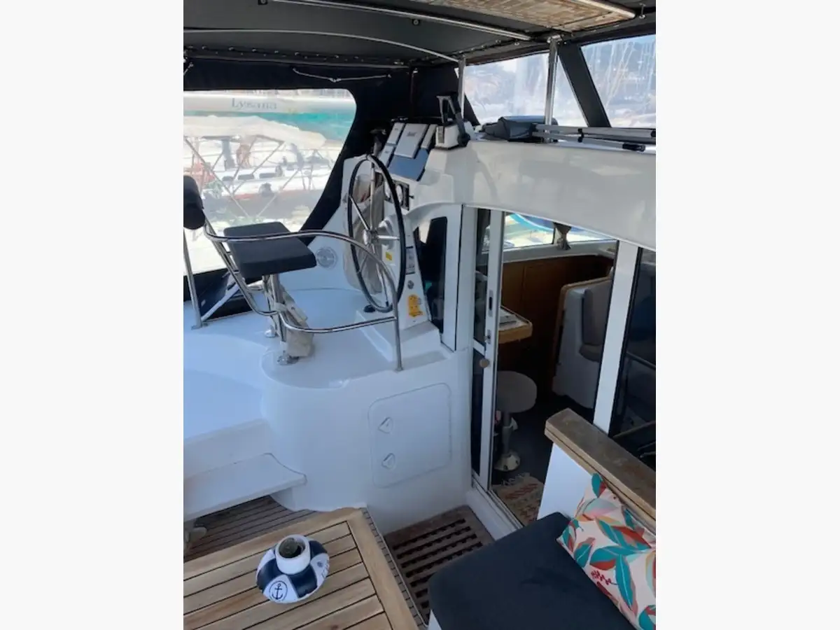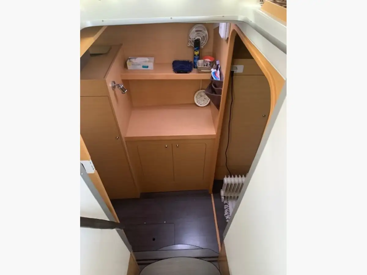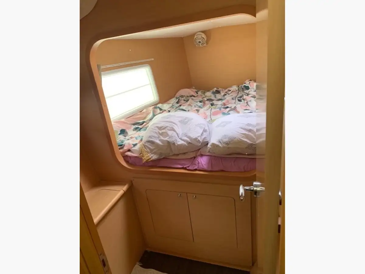 A l’intérieur un salon lumineux, très bien conçu, avec une belle hauteur sous barrot et un espace de vie spacieux. La cuisine parfaitement équipée permet de profiter pleinement de la vie à bord, que ce soit en navigation ou au mouillage. Cette configuration propriétaire offre une cabine vaste et confortable, ainsi que des espaces optimisés pour offrir une expérience de croisière chaleureuse et fonctionnelle.