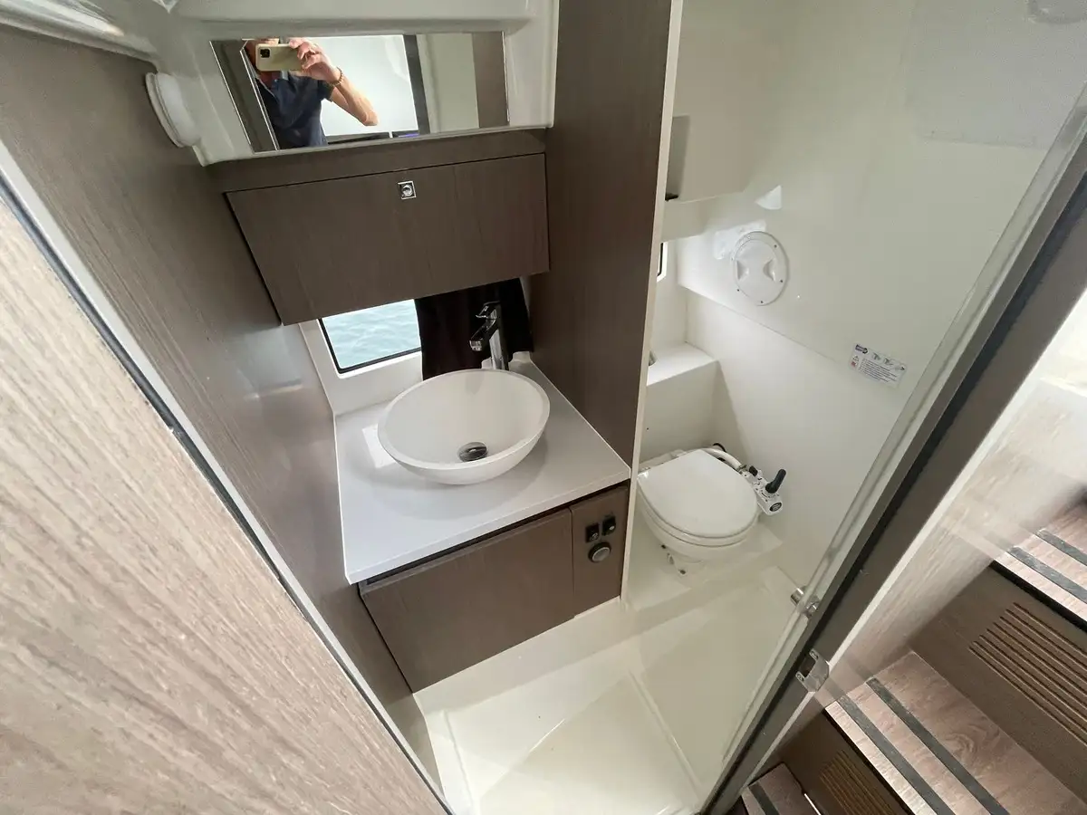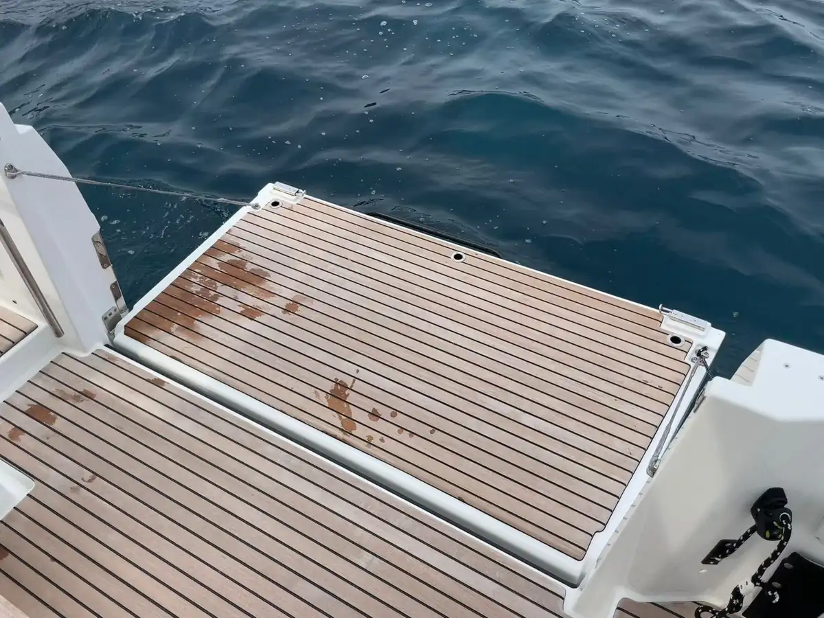 She also benefits from a very spacious portside lateral terrace, a major asset that fully opens the cockpit to the sea and provides easy and privileged access for swimming.