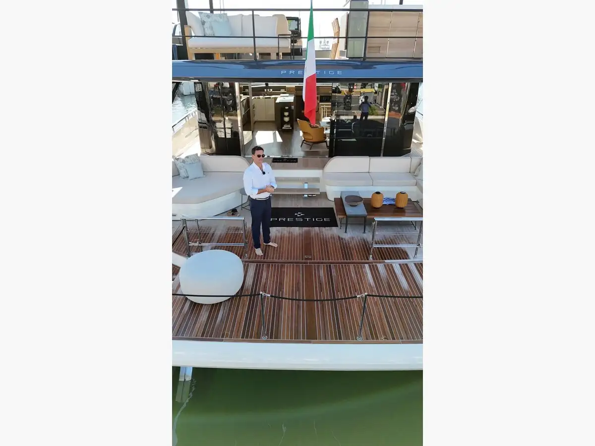 Nous vous invitons à découvrir ce Prestige M7 disponible à bord ou en visite live vidéo. Nous pouvons également organiser une présentation privée en concession, des essais en mer ou une rencontre lors de nos événements.