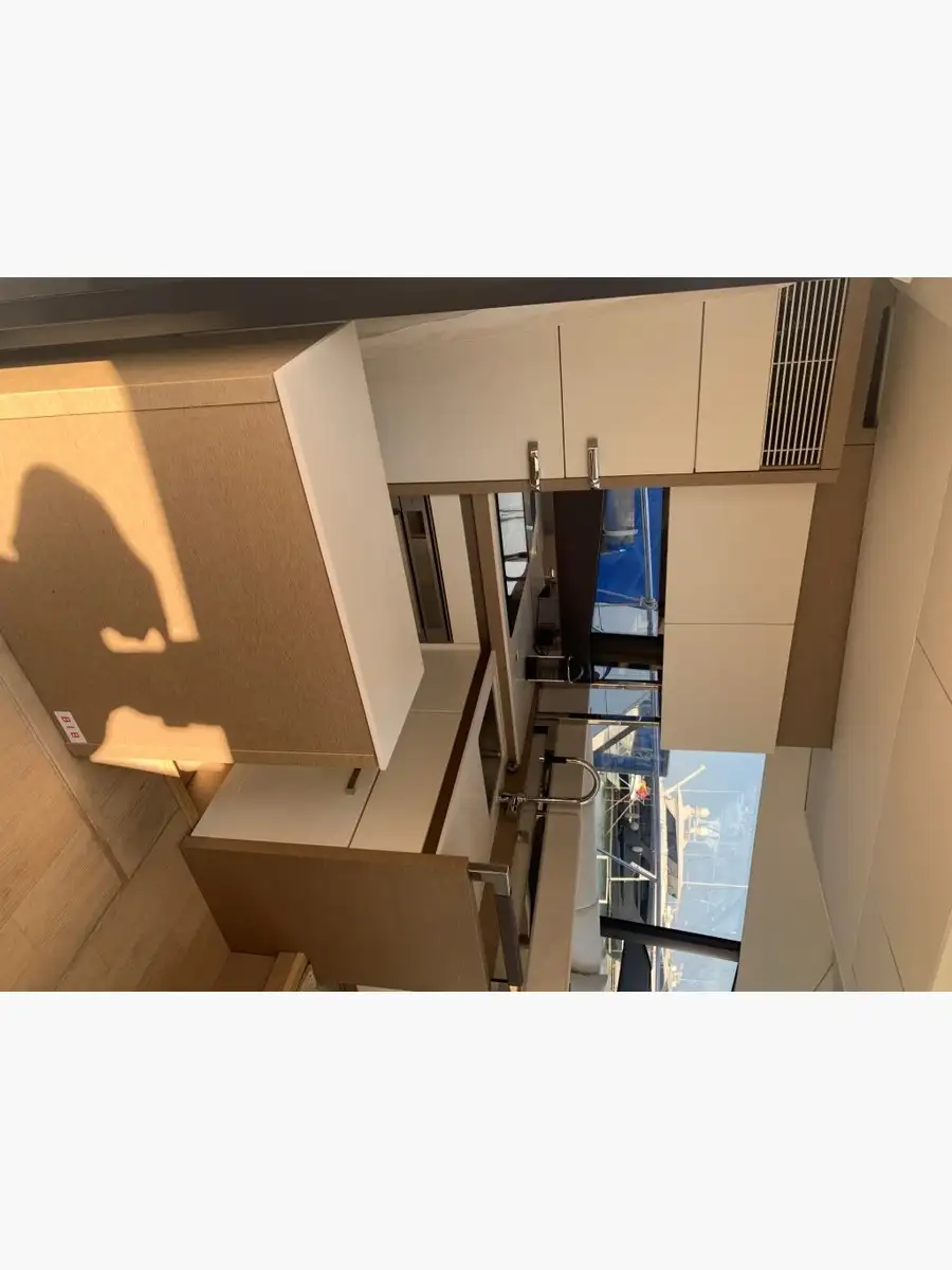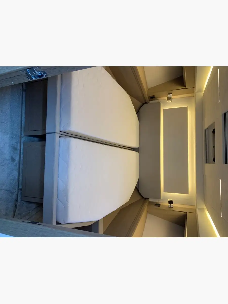 The interior layout, bathed in light thanks to the huge side windows, offers a real feeling of a floating villa — chic, warm and functional. Not to mention its owner's cabin...