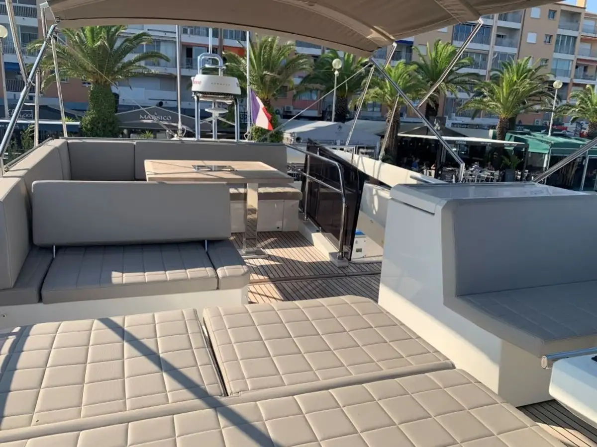 Sunbathing areas at the bow, stern and flybridge with covers